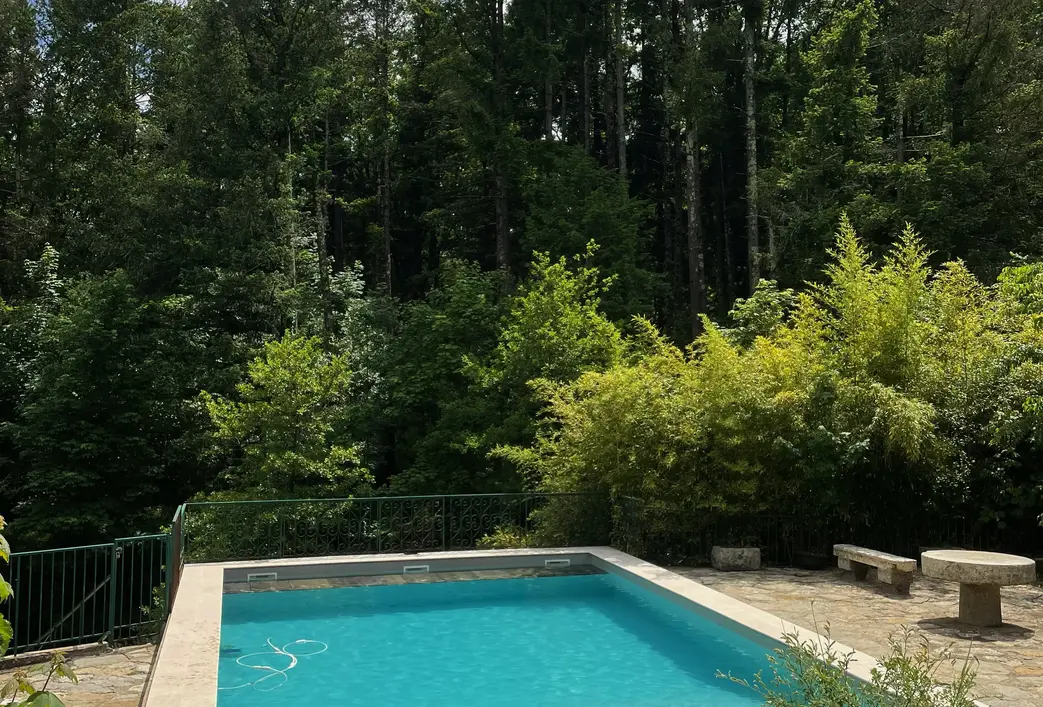 Le lieu est traversé par la rivière “l’Auzon”, bordé d’une forêt. Il est composé de jardins arborés et fleuris, d’une plaine à chevaux, de vergers, d’une piscine, de ter- rasses ombragées d’arbres centenaires, d’un théâtre de verdure, de chemins de randonnée partant dans les bois et sur les collines environnantes...